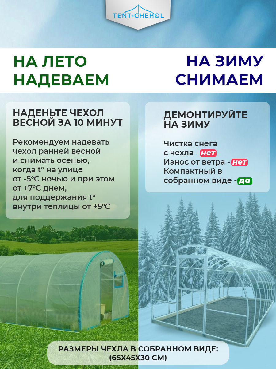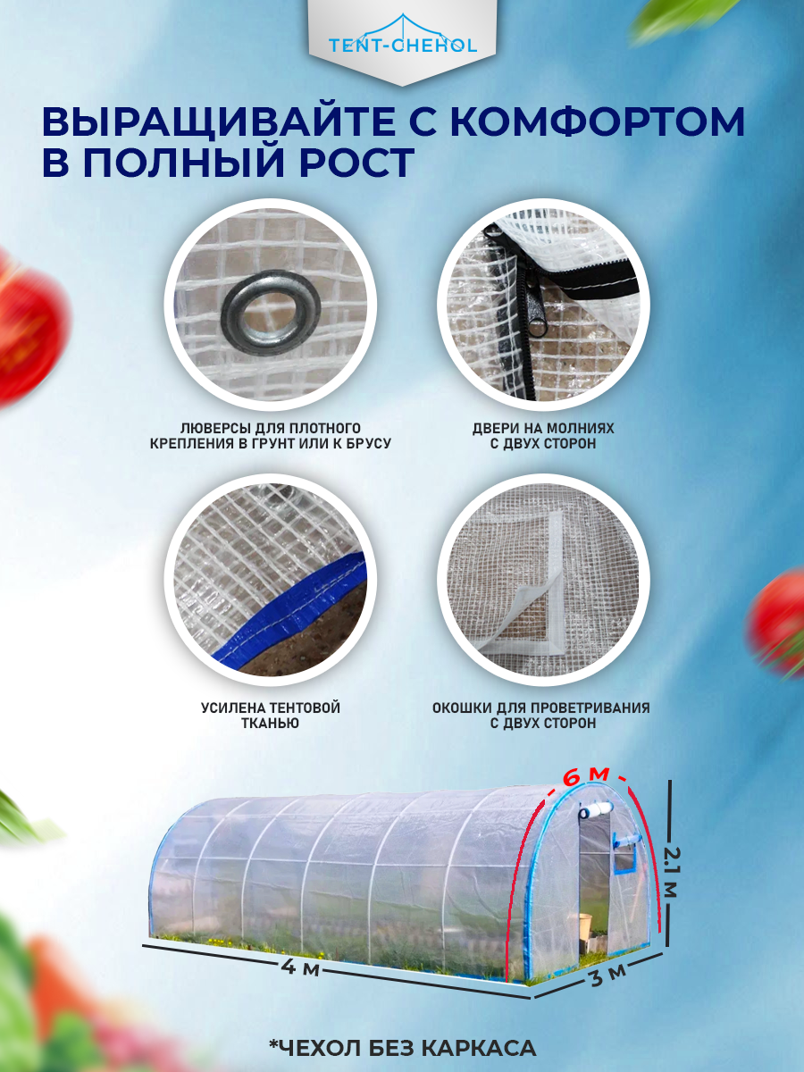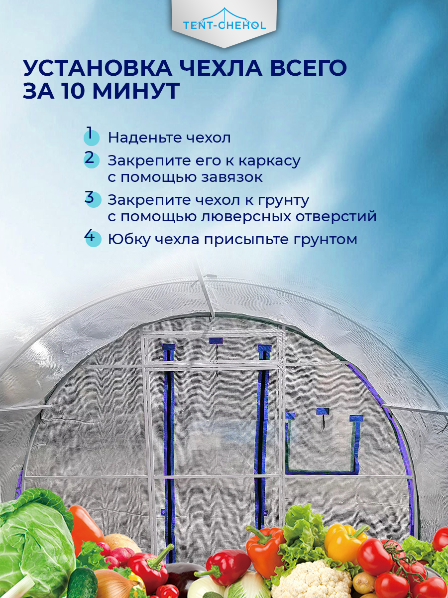 Чехол для теплицы с боковым проветриванием на каркас 4х3х2.1м
