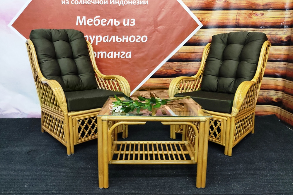 Это подушки, предназначенные для комплекта плетёной мебели «ФРАНЦИСКО ДУЭТ», в наборе находятся подушки для двух кресел, выполнены они в оливковом цвете, но могут иметь и другие цвета. Изготовлены подушки из ткани грета, в качестве наполнителя используется синтешар первого сорта и поролон. Подойдут такие подушки для кресла, ширина которого составляет 70 см, глубина 93 см, а высота 99 см.