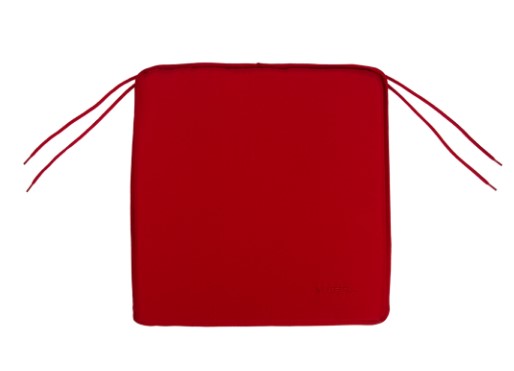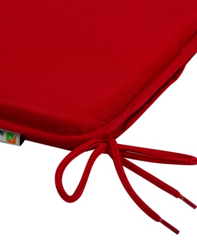 Данная подушка предназначена для садовой мебели, по бокам у неё есть специальные завязки, благодаря чему такую подушку с лёгкостью можно закрепить на мебели. Эта подушка имеет красный цвет, а изготовлена из такой ткани, как полиэстер. Ткань является съемной, она подойдёт для машинной стирки. Для того, чтобы изделие было удобно фиксировать, на мягком элементе есть завязки. Ширина изделия составляет 40 см, длина также составляет 40 см, а толщина 3 см.
