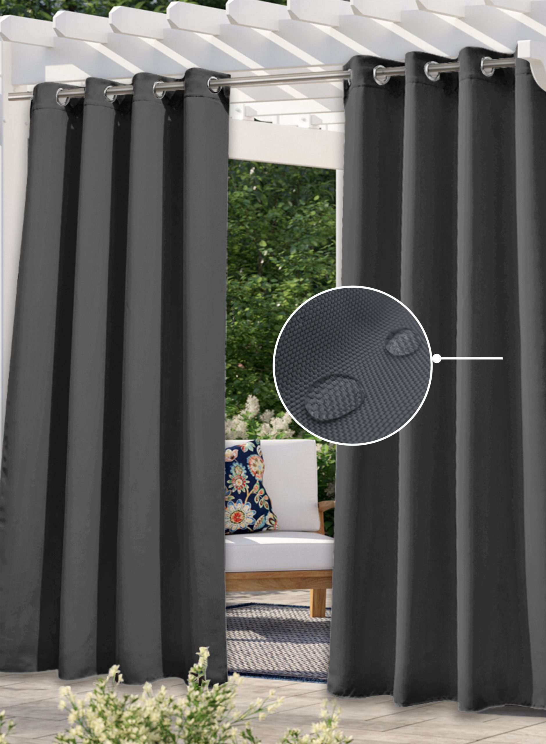 Краткое описание «Уличные шторы 1,45х2,6 м, темно-серые, ткань Оксфорд 600»