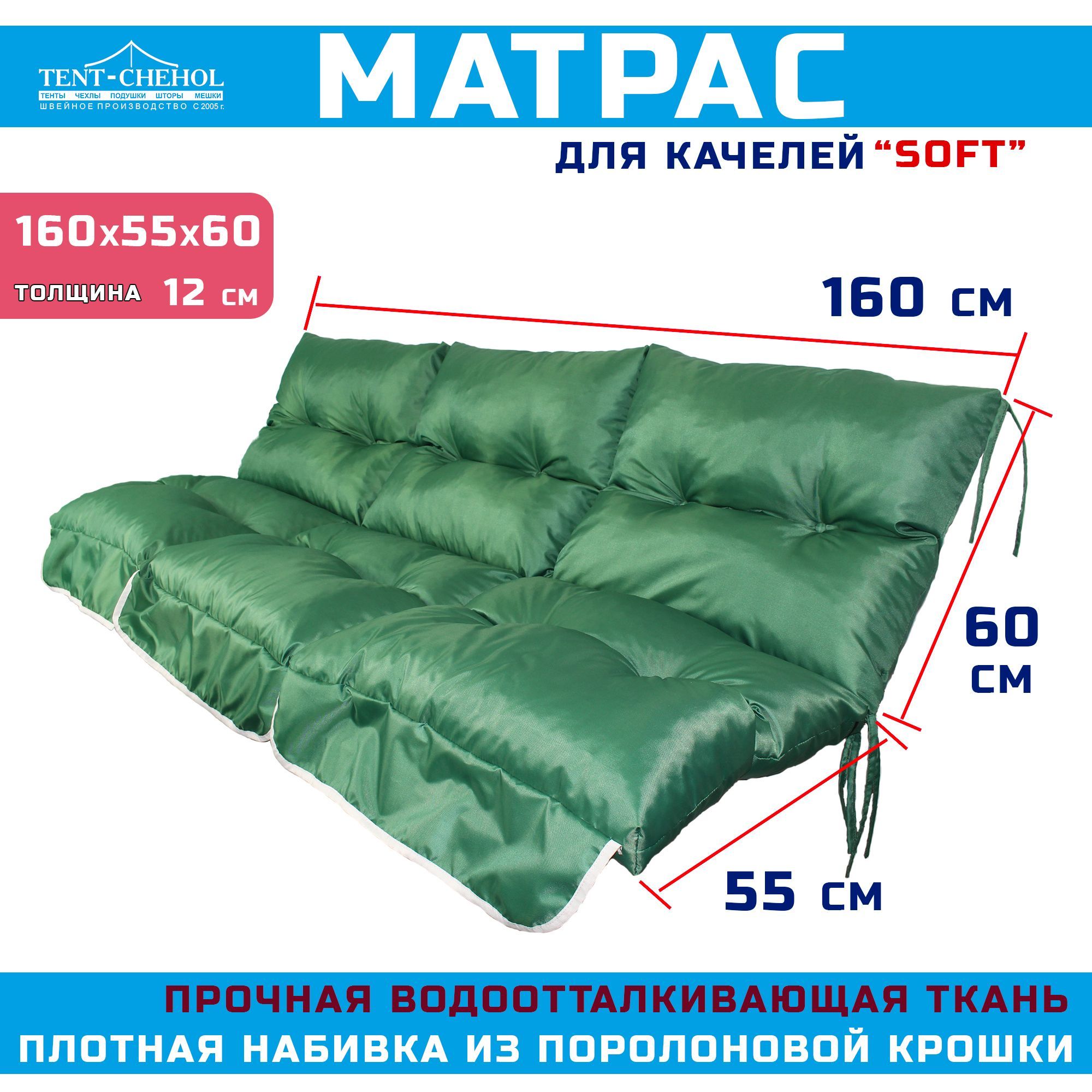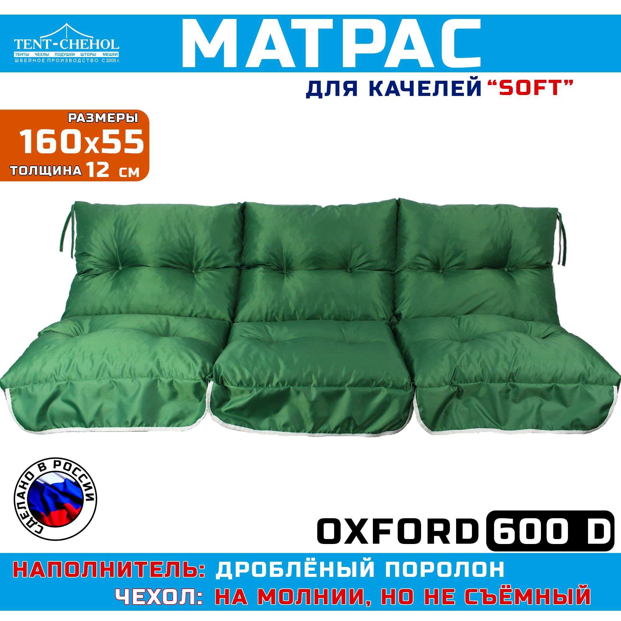 Купить Матрас для качелей 160х55х60 (еловый Оксфорд 600, с поролоновой крошкой) цена 4900 руб. в Москве и СПб с доставкой по России
